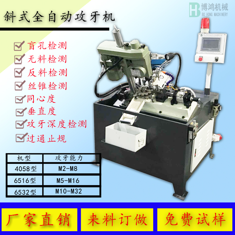 二、要了解有關攻絲機的能攻最大值是多少,一般要求是45號鋼,而且攻絲時深度要達到絲錐直徑的兩倍,并能一次性完成整個的攻絲過程。